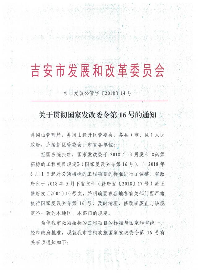 标题:关于贯彻国家发改委令第16号的通知